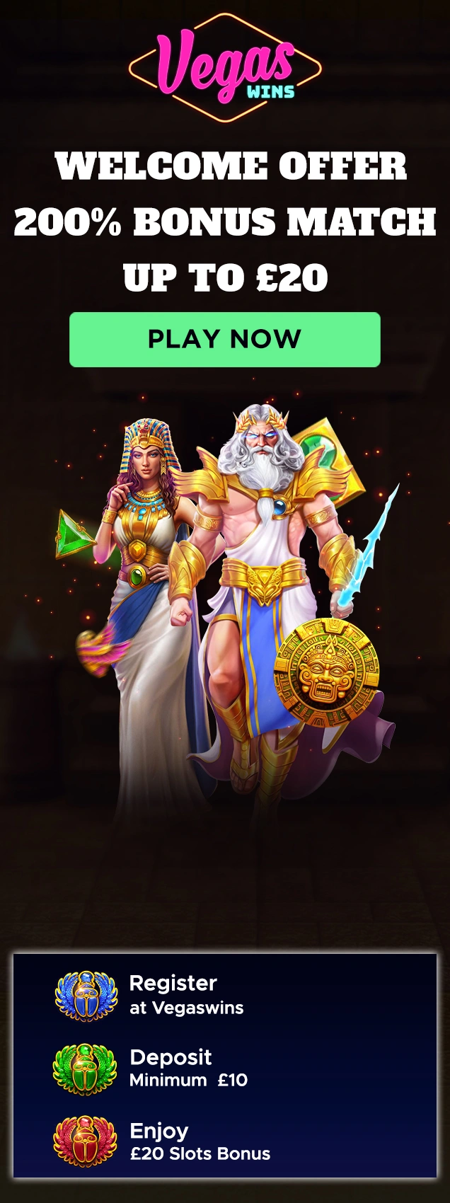 - Deposit £10+ for a 200% Bonus Match up to £20.